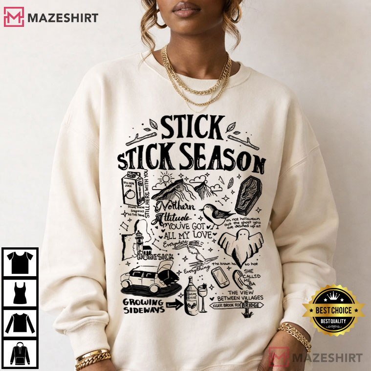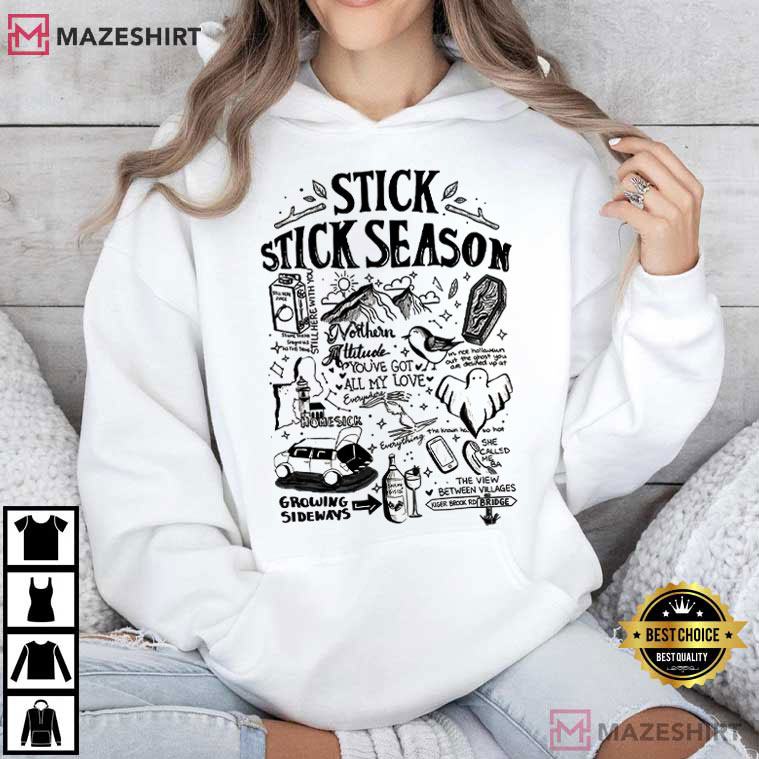 The Noah Kahan Stick Season Music Fan Gift T-Shirt is a finely crafted shirt based on one of the best indie folk albums of the past several years. With a mix of hand-drawn pictures and song lyrics, this tee embodies the raw honesty and nostalgic storytelling that make Stick Season so great.