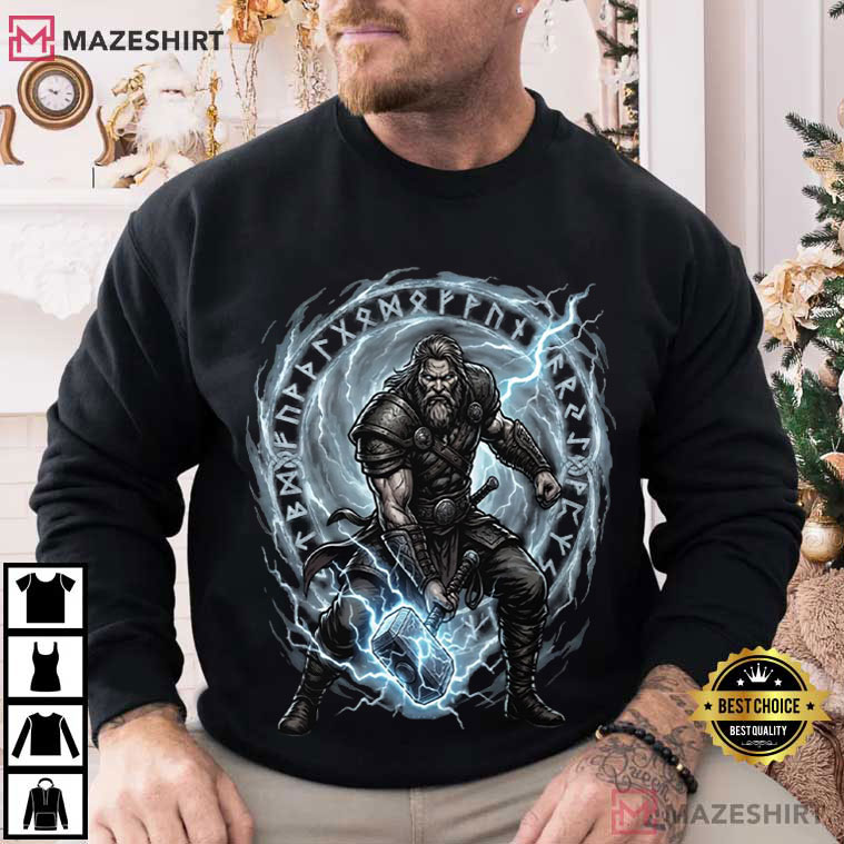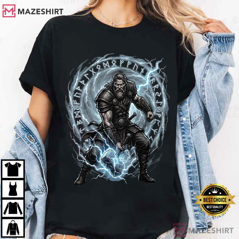 The Norse Viking Warrior Thor Mjolnir Hammer T-Shirt is a great way to honor old stories and show how strong you are. This design shows a fierce warrior carrying the famed hammer, which stands for Thor’s incredible strength. Thor is one of the most well-known figures in Norse mythology.