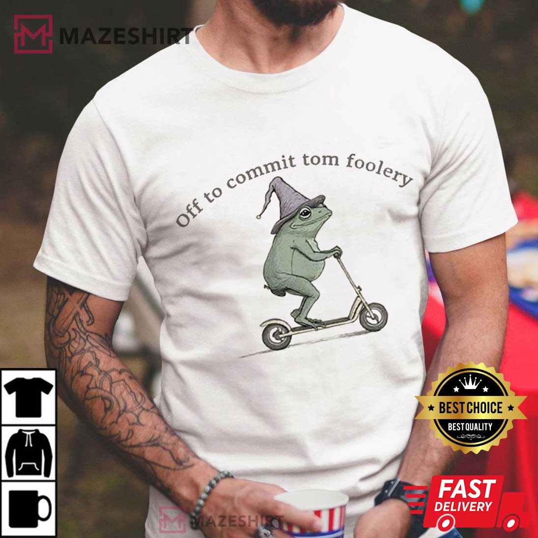 The Off To Commit Tom Foolery Frog Funny Meme T-Shirt is the perfect shirt for anyone who loves to laugh and have some fun! This humorous meme T-shirt is bright white and has a strange green frog wearing a wizard hat. The frog is riding a scooter with the funny slogan “Off to Commit Tom Foolery” above it. This frog T-shirt is perfect for people who like memes, pranks, or just being goofy. It’s great for casual days, parties, or just hopping around town.