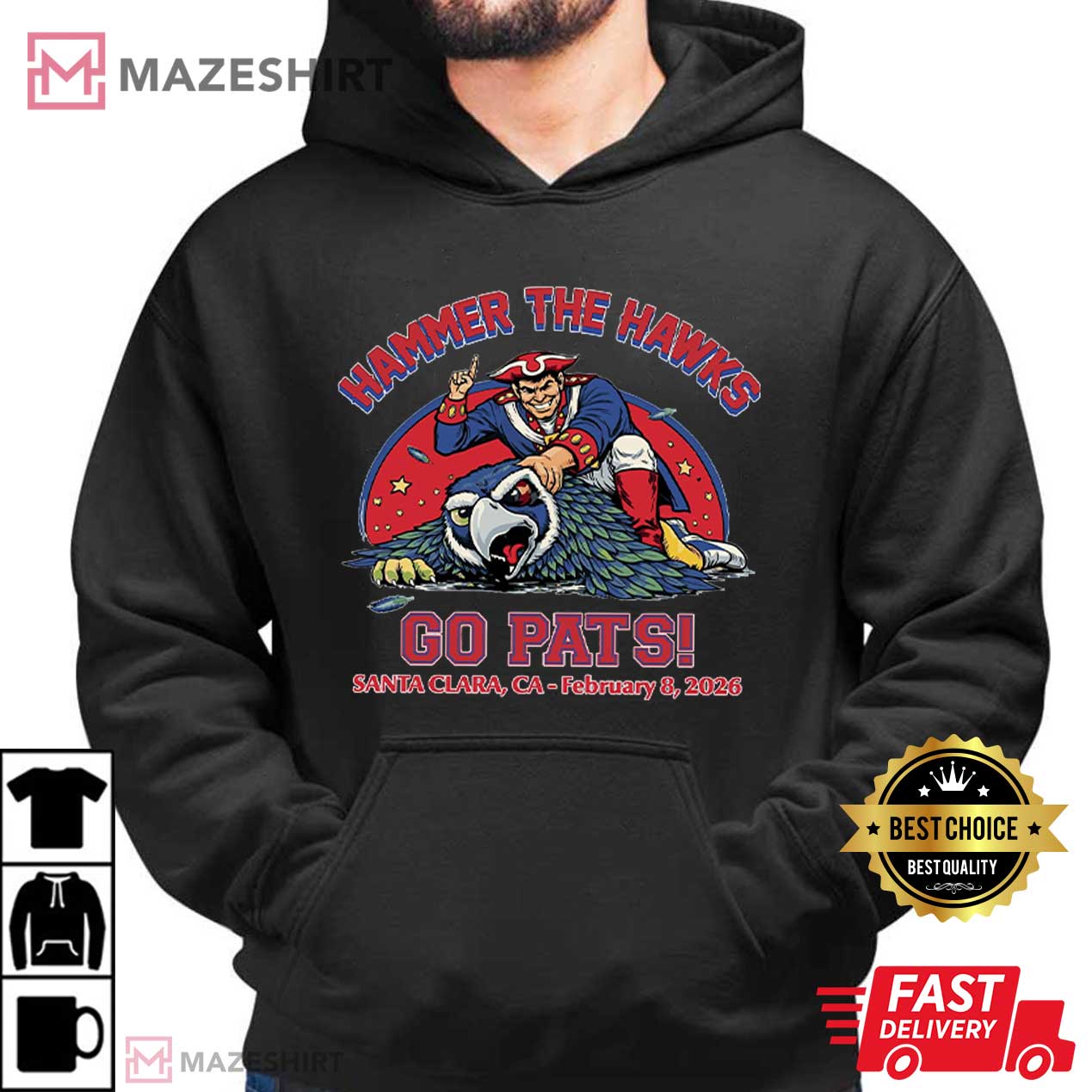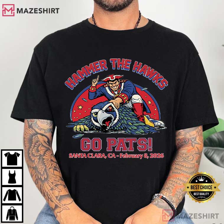 The Super Bowl Hammer: Patriots vs. Seahawks The Hawks T-Shirt is more than just a piece of clothing for fans. This shirt is for die-hard fans of the New England Patriots. It portrays the excitement, rivalry, and larger-than-life atmosphere of a Super Bowl game against the Seattle Seahawks.