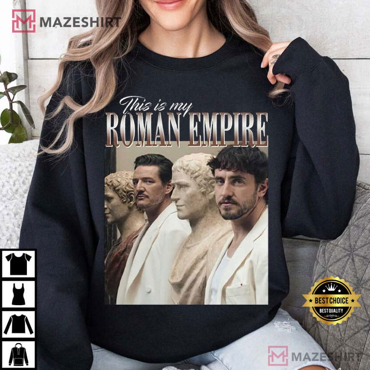 Do you give The Roman Empire at least one daily thought? Thanks Paul Mescal & Pedro Pascal; now, everyone does! Combining history, pop culture, and irresistible celebrity appeal into one must-have shirt, this “This Is My Roman Empire” T-Shirt catches the internet’s favorite inside joke and transforms it into a chic retro bootleg tee.