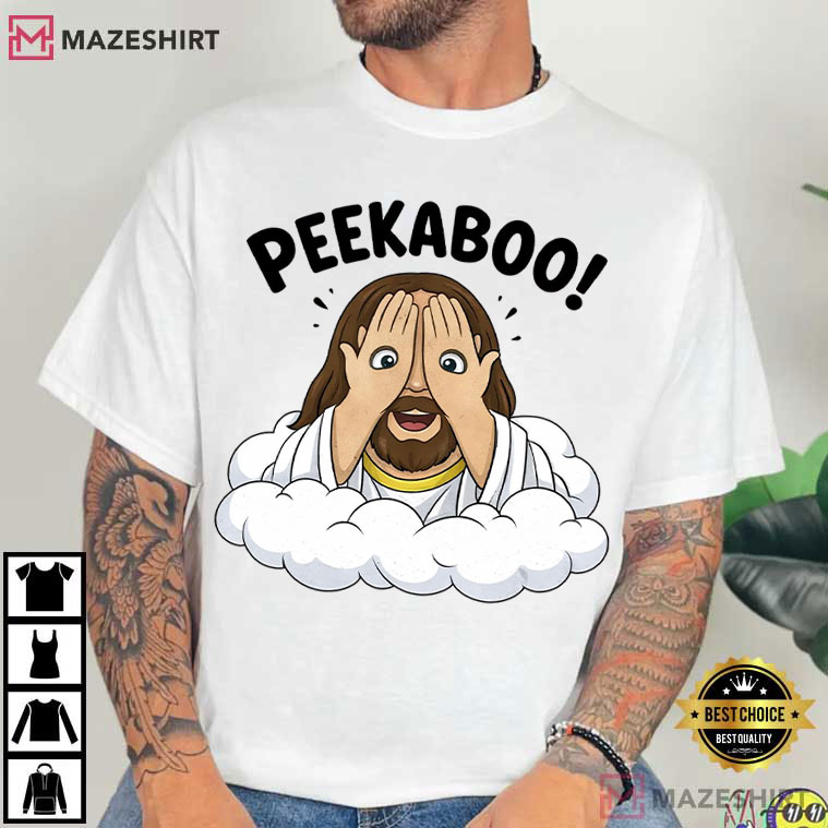 Peekaboo Jesus Funny Christian T-Shirt – graphic tees men, graphic tees women, unique graphic t shirts