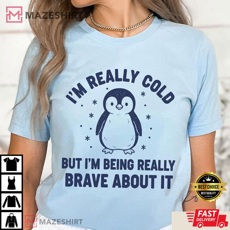 Penguin I'm Really Cold But I'm Being Really Brave About It T-Shirt – graphic tees men, graphic tees women, unique graphic t shirts