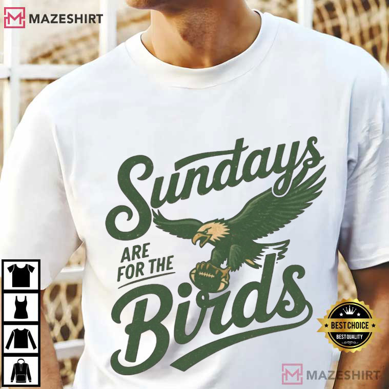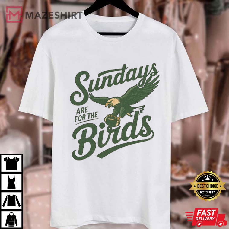 Sundays Are For The Birds For The Philadelphia Eagles The Philly Football T-Shirt is the best way for any die-hard Eagles fan to show their support and get ready for game day with style and a smile. Imagine a sharp white shirt with a big green eagle holding a football and the snappy phrase “Sundays Are For The Birds” in the iconic Philly green lettering.