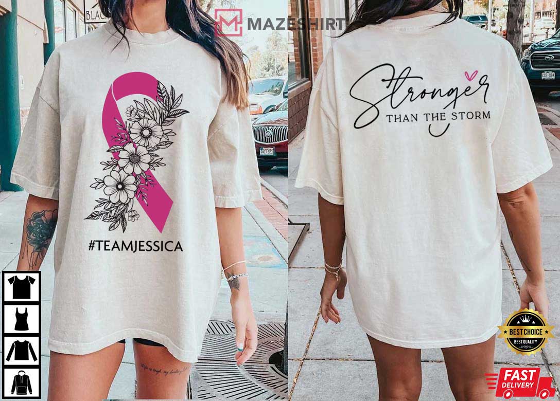 Pink Ribbon Breast Cancer Awareness Support Team Name Custom T-Shirt – graphic tees men, graphic tees women