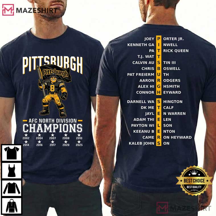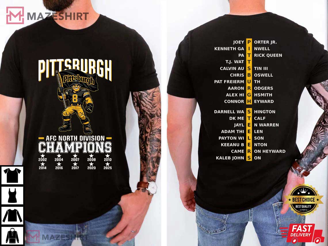 The Pittsburgh AFC North Champs Football T-Shirt is for fans who don’t just watch football; they live it. This design honors a team that always shows it belongs at the top and one of the hardest divisions in the NFL. This shirt has a lot of history, toughness, and the never-give-up attitude that is a big part of Pittsburgh football culture.