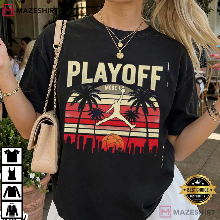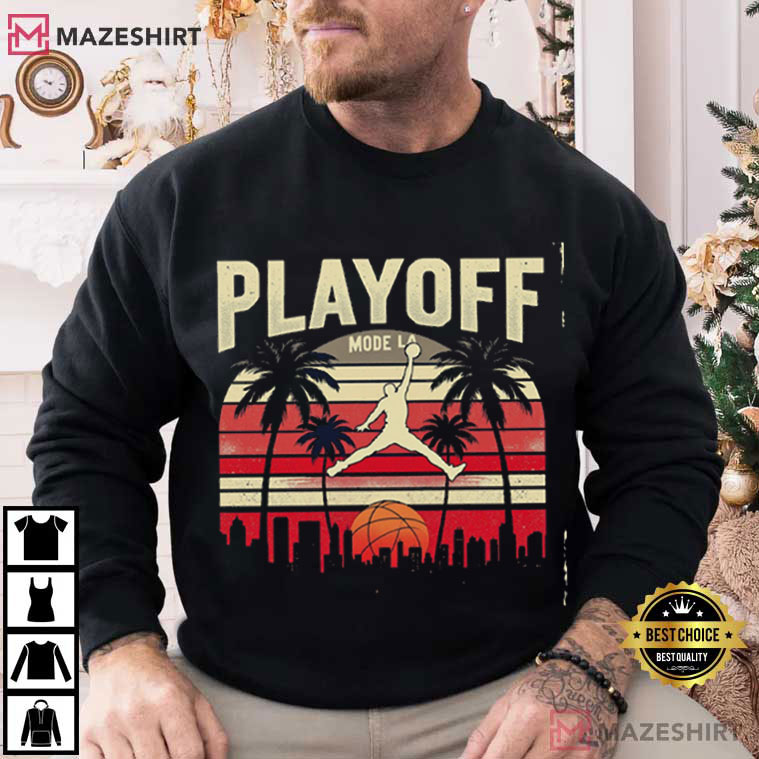 Playoff Mode La Basketball Graphic Retro Sunset Sports T-Shirt – basketball team shirts, basketball graphic t shirts