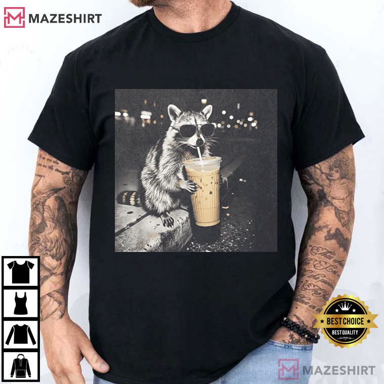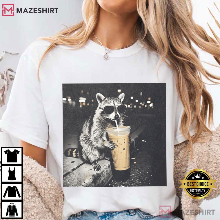 Raccoon Drinking Iced Coffee Funny Animal Meme T-Shirt