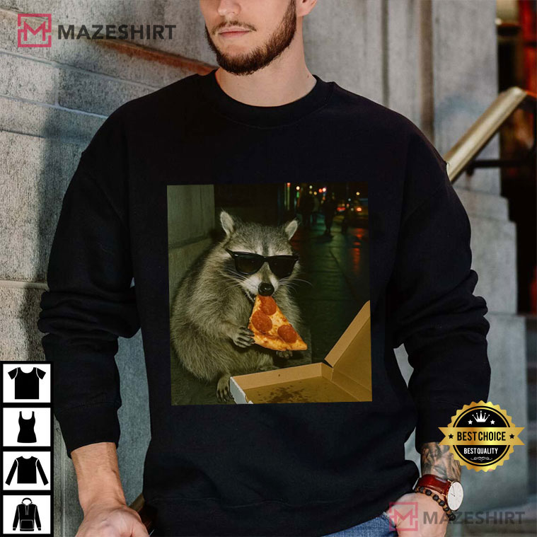 Raccoon Eating Pizza Funny Meme T-Shirt