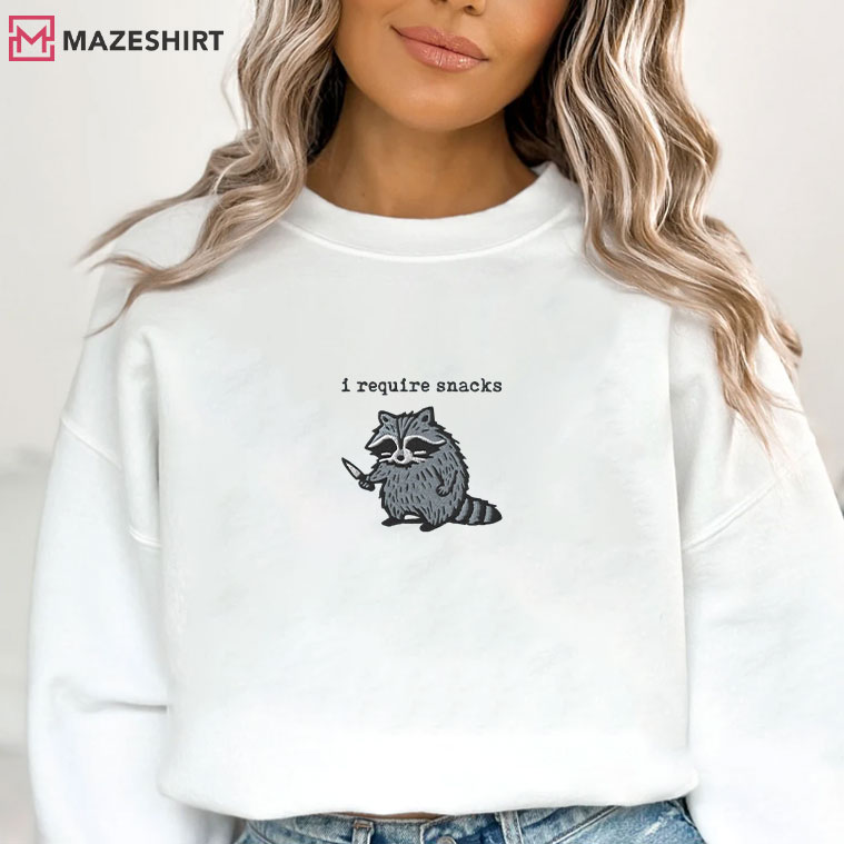 Raccoon I Require Snacks Embroidered Sweatshirt