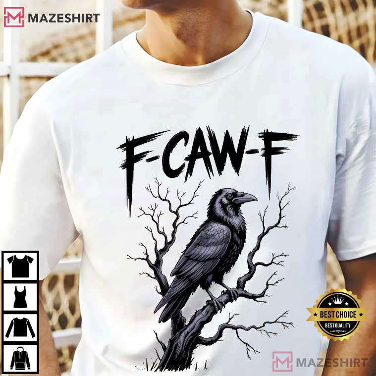 With the Raven Lover F-Caw-F Funny Black Crow T-Shirt, you may get ready to spread your wings and make people laugh. This isn’t just a t-shirt; it’s a fun ode to raven lovers with a big black crow sitting on twisted branches and the words “F-Caw-F” adding a fun touch. This white shirt is great for people that love birds, Halloween, or just have a dark sense of humor. It has a cool look and is comfortable to wear. Put it on to go birdwatching, to a scary party, or just to mess with your neighbors by making them think you can caw!
