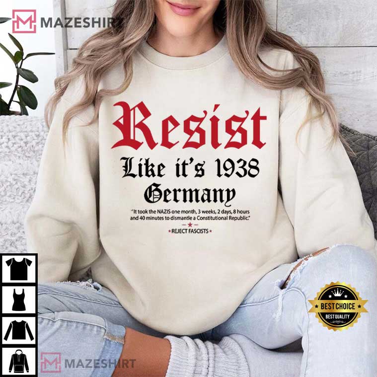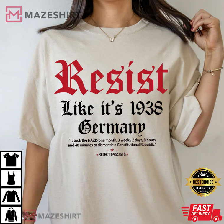 The Resist Like It’s 1938 Germany Fascism Anti Trump T-Shirt isn’t just a shirt; it’s a time machine made of cotton that sends you back to a period when standing up for what you believe in was everything, but with a modern twist that hurts harder than a nasty tweet storm. Imagine this: A white shirt with big, gothic red letters that scream “RESIST” like it’s trying out for a heavy metal album cover. Then it says, “Like It’s 1938 Germany.”