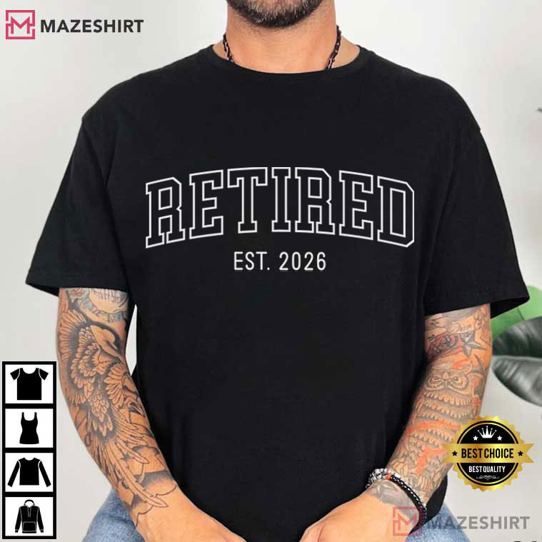 This shirt has a clean varsity look that never goes out of style. The big collegiate-style letters spell out “RETIRED” with “EST. 2026” underneath. The powerful block typeface stands for success and strength, and the “Established 2026” detail makes it personal—a clear sign that a new chapter in life starts this year.