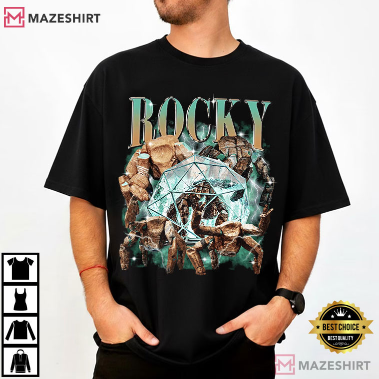 Fans of smart sci-fi and striking graphic design will love the Rocky Project Hail Mary Sci-Fi Movie Vintage Bootleg 90s T-Shirt. Inspired by the popular character Rocky from Project Hail Mary, this shirt has a retro bootleg look that feels like it came from the underground culture of the 1990s.