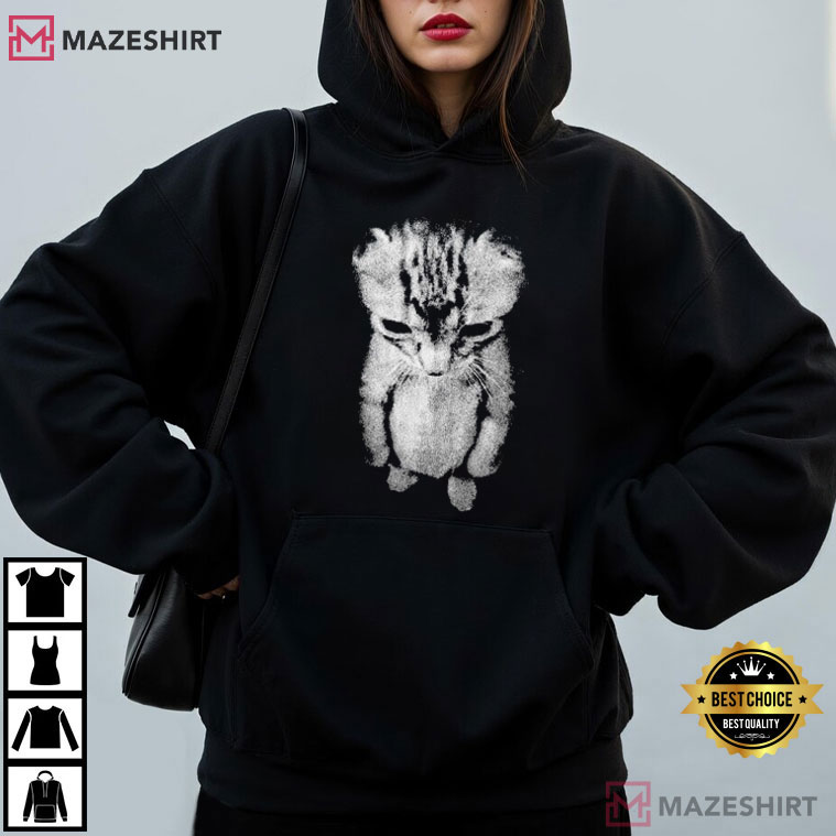 This design shows a small kitten standing up with its head slightly down and its eyes full of emotion. There are no bright colors or loud sounds; just a soft, grainy texture that makes the cat feel real, fragile, and oddly comforting. People pause, look twice, and say, “Yep… I feel that” when they see this picture.