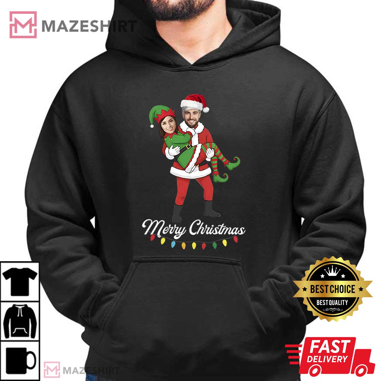 Santa And Elf Christmas Custom Face Photo Couple T-Shirt – christmas themed shirts, funny christmas shirts