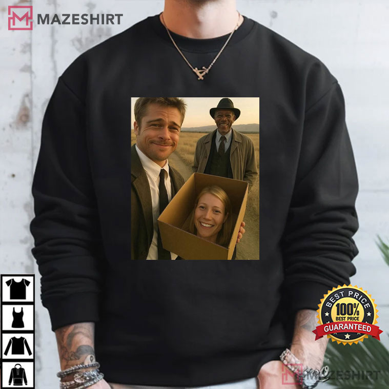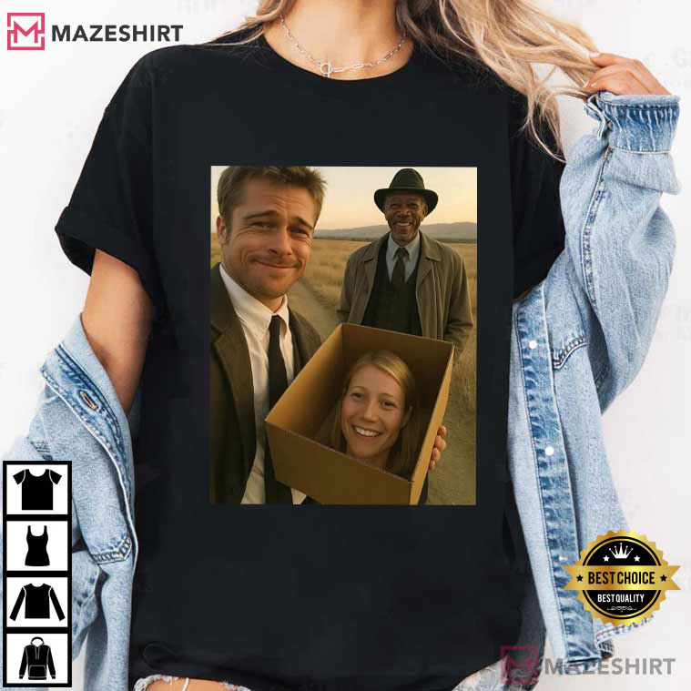 This Se7en What’s In The Box Movie Meme T-Shirt is perfect for fans of classic thrillers and famous movie scenes. It has the kind of dark comedy that fans enjoy. The design takes the tension from one of the most memorable scenes in David Fincher’s 1995 movie Se7en and turns it into a fun, current meme-style twist.
