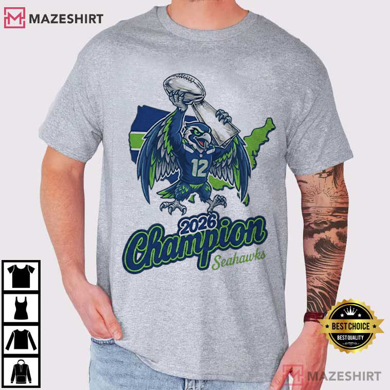 The Seattle Seahawks Football 2026 Champion Mascot T-Shirt is a bold statement of faith, devotion, and hope for the future. It’s for supporters that don’t just support their team in the past or present, but also boldly stand behind what they believe is still to come.