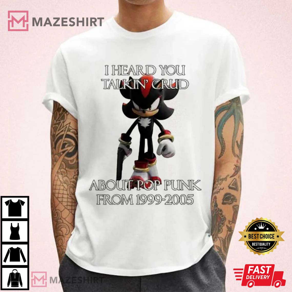 The Shadow The Hedgehog I Heard Talking Crud About Pop Punk From 1999–2005 T-Shirt is a must-have for fans of the fast-paced anti-hero and the golden age of pop punk. This shirt has a mix of nostalgia, humor, and a little bit of attitude, so it’s great for concerts, hanging out with friends, or just showing off like you control the scene.
