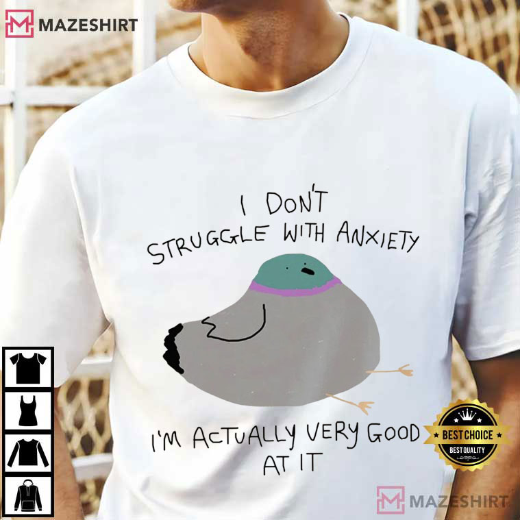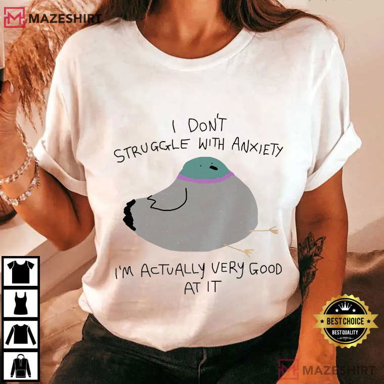 This Silly Pigeon “I Don’t Struggle With Anxiety—I’m Actually Very Good at It” T-Shirt is perfect for you if you use laughing to deal with stress. The design has a fat, doodle-style pigeon resting on its side, appearing like it’s had enough of life. This kind of tired bird energy makes the joke strike even harder. The untidy handwriting makes it funnier, and the overall picture seems like a comic book doodle that came straight from someone’s nervous inner monologue.