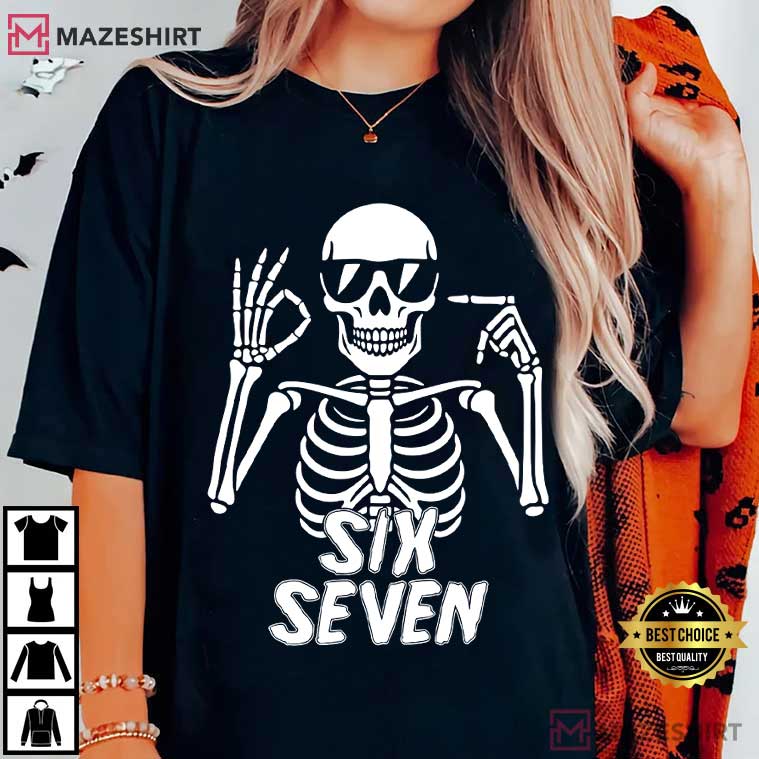 Six Seven 6 7 Meme Funny Skeleton Bones Halloween T-Shirt – halloween themed shirts
