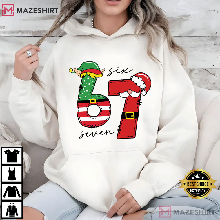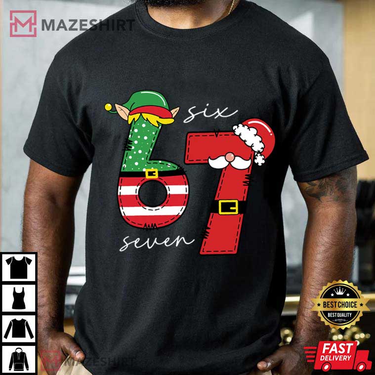 Six Seven 67 Meme Elf Santa Funny Christmas Holiday T-Shirt