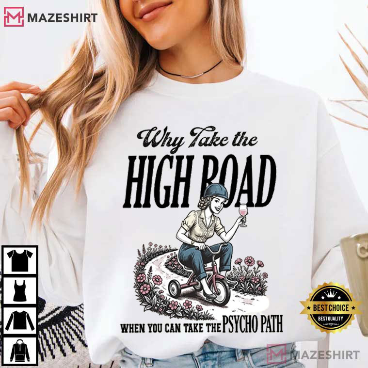 The Snarky Mom Why Take The High Road When You Can Take The Psycho Path T-Shirt is perfect for you if you have a slightly crazy sense of humor (in a good way). This shirt is bold, funny, and just the right amount of crazy. It has that “I tried being nice… but nah” vibe that so many moms (and really, everyone) can relate to.