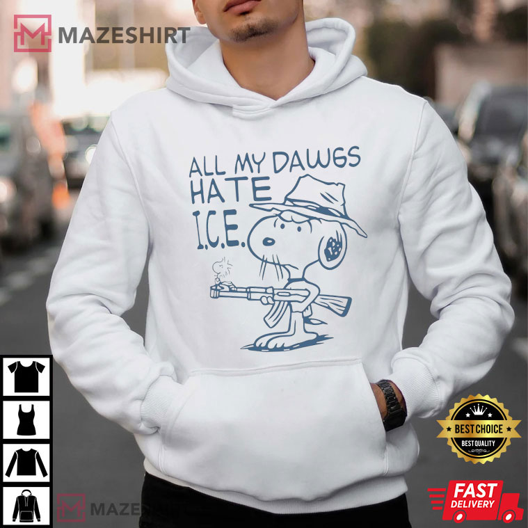 Snoopy All My Dawgs Hate ICE Meme T-Shirt – graphic tees men, graphic tees women, unique graphic t shirts
