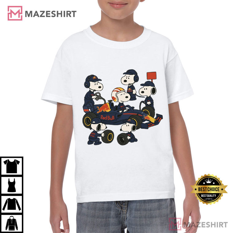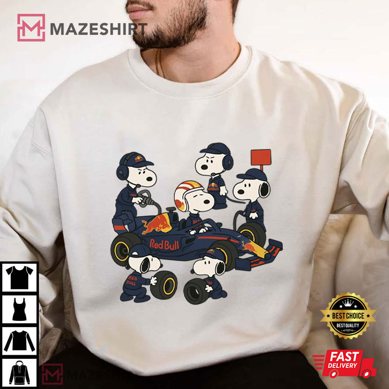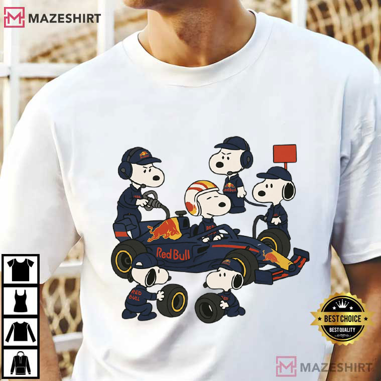 Snoopy Red Bull Pit Crew Formula 1 Mechanic T-Shirt – graphic tees men, graphic tees women, unique graphic t shirts