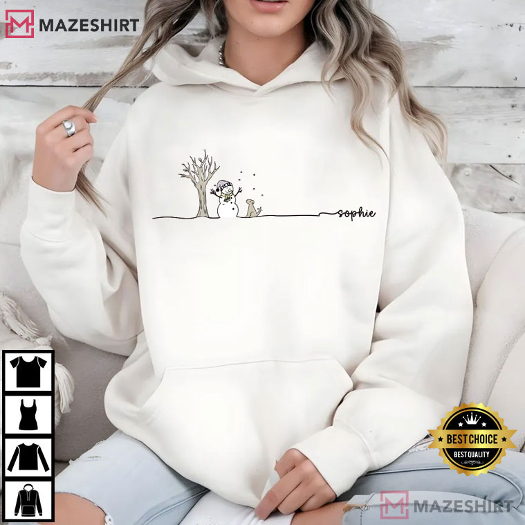 The Snowman Tree And Dog Winter Snowflake Custom Name T-Shirt evokes the peaceful magic of winter in a way that feels warm, intimate, and timeless. This design doesn’t use loud graphics or heavy Christmas cliches. Instead, it focuses on simplicity with soft lines, compassionate figures, and a moment that feels like it might be yours.