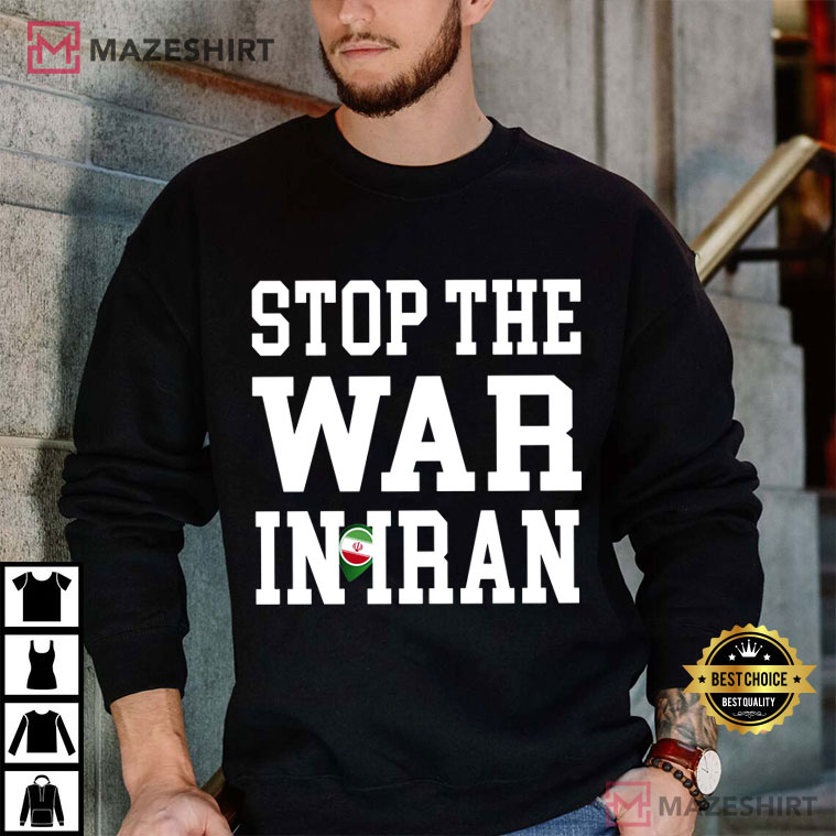 The Stop The War In Iran We Stand With Iranian People T-Shirt is a bold statement piece that sends a strong message of peace, unity, and kindness. This shirt has powerful text and a symbolic design that show solidarity for ordinary people who are affected by political tensions and violence around the world.