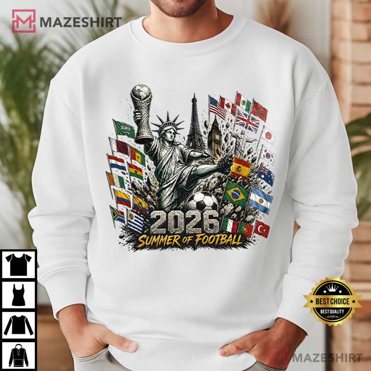 Some sports events go beyond teams and rivalries; they bring the whole world together. The Summer of Football 2026 North America Global Flags T-Shirt reflects that precise feeling. This design is inspired by the hype about the biggest football tournament in the world in 2026. It promotes unity, passion, and the love of the beautiful game that everyone has.