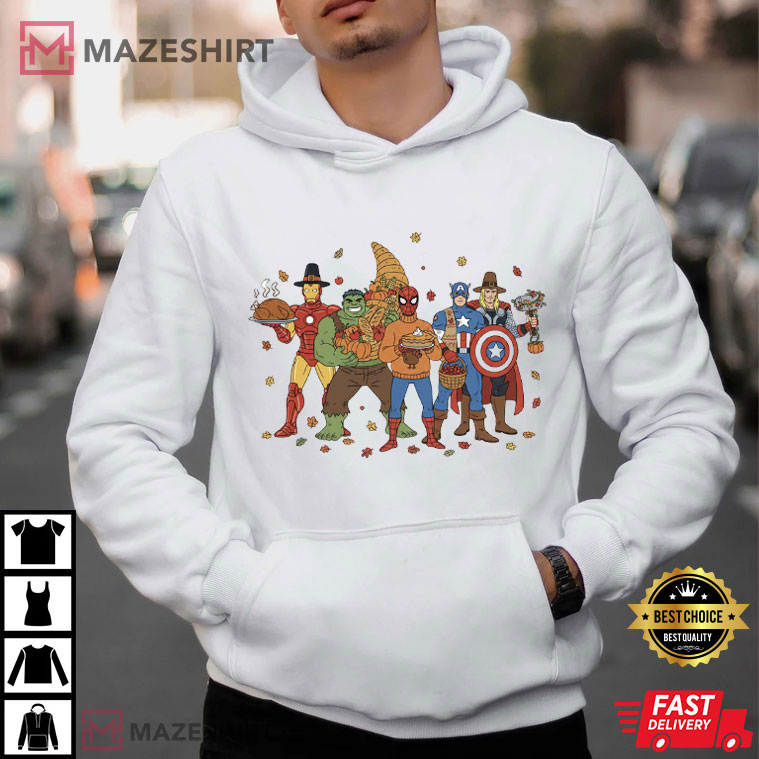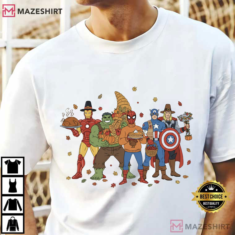 Let’s be honest: superheroes defend the world all year long, but they need a rest in November. And what better way to relax than to trade in your capes for soft cotton and sit down to a platter of turkey and mashed potatoes? The Thanksgiving Superhero Funny Marvel Fall T-Shirt is your way to show off your love for both Marvel and the fall season.