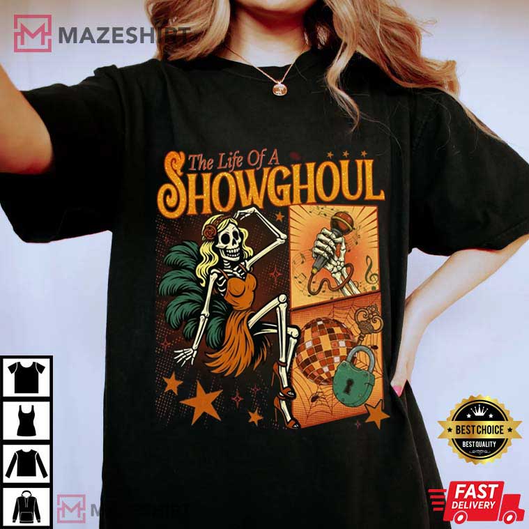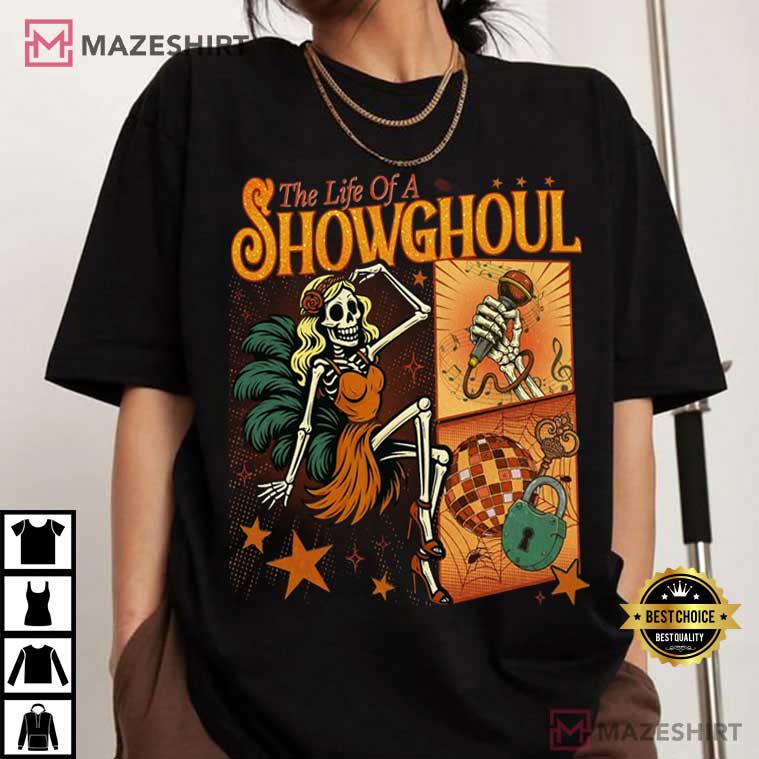 The Life Of A Showghouls Funny Skeleton Halloween Spooky Season T-Shirt – halloween themed shirts