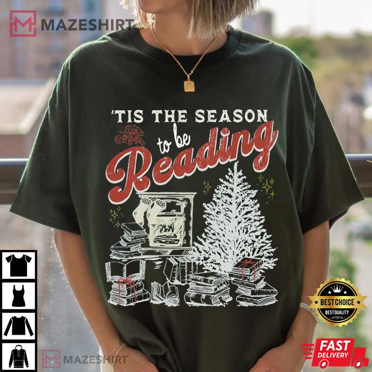 Tis The Season To Be Reading Vintage Christmas Bookish T-Shirt – christmas themed shirts, funny christmas shirts