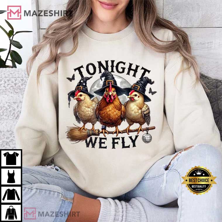 Tonight We Fly Halloween Witchy Chicken Fall T-Shirt – halloween themed shirts