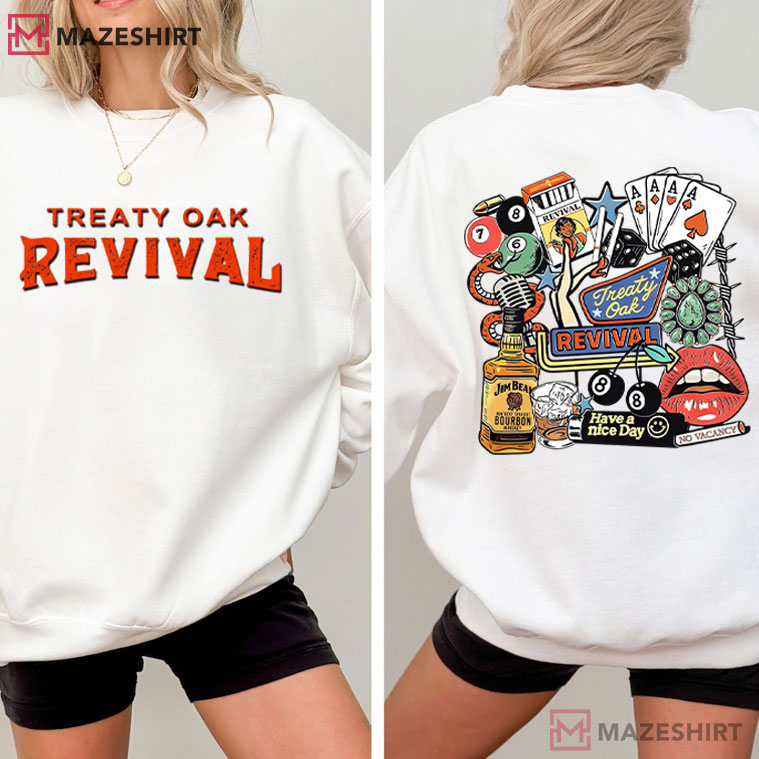 Unapologetically loud and raw The Treaty Oak Revival Jim Beam Collage Rock Band T-Shirt from Texas portrays the wild attitude of a band that plays loud guitars, tells stories best told over a drink, and stays up late. This shirt feels like real tour merchandise straight from a crowded dancehall since it has a crisp logo on the front and a detailed collage on the back.