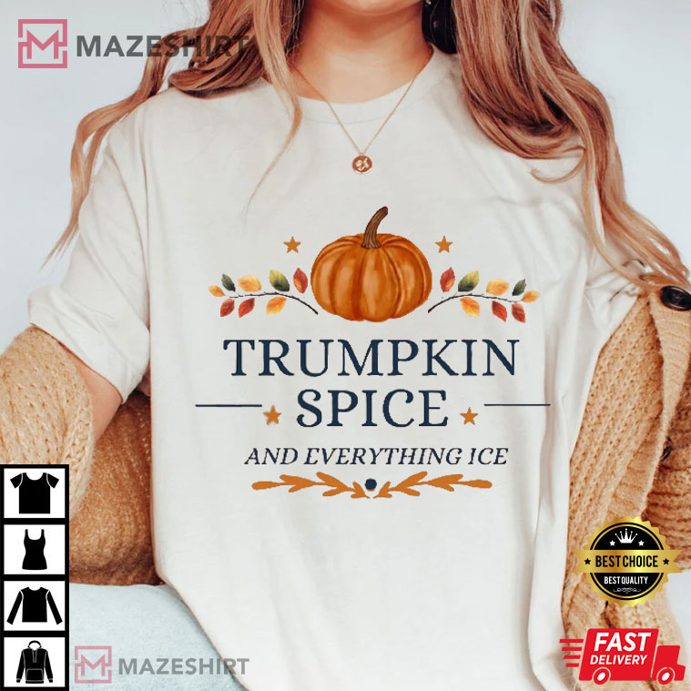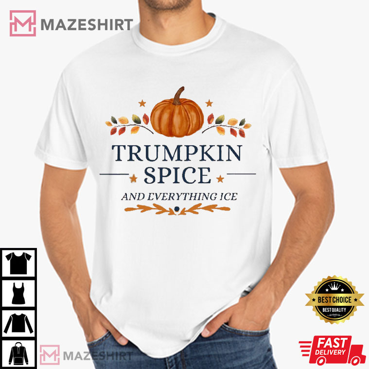 Hey, those who love fall and make fun of politicians! If you like pumpkin spice lattes with a side of sarcasm, the Trumpkin Spice and Everything Ice Pumpkin T-Shirt is perfect for you. This shirt isn’t just comfortable; it’s also a hilarious jab at former President Donald Trump and a brilliant blend of seasonal moods. It’s great for folks who want to laugh while they drink their lattes.