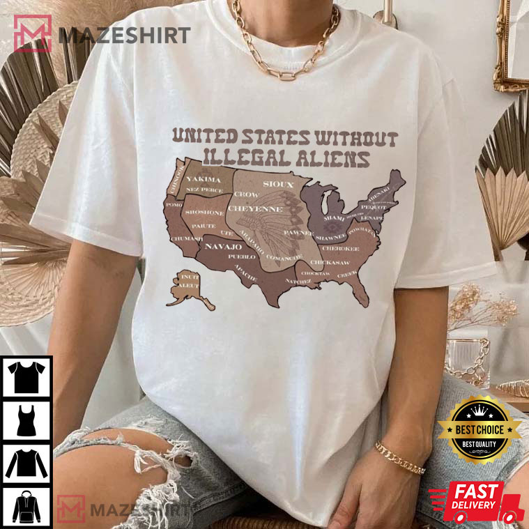 US Without Illegal Aliens Native Land Map Abolish ICE T-Shirt – graphic tees men, graphic tees women