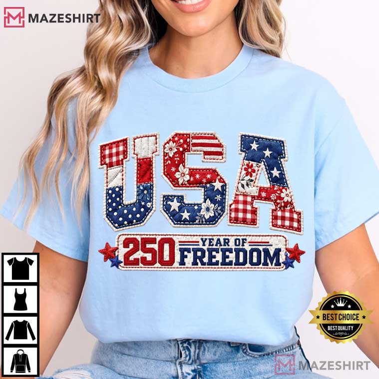 USA 250 Year Of Freedom Patriotic USA Not Real Patchwork T-Shirt