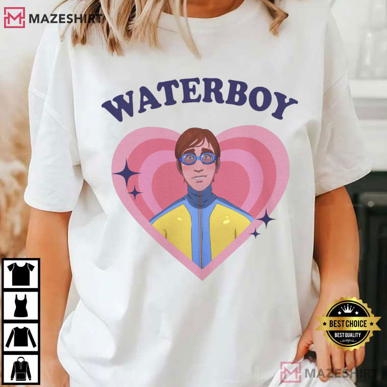 The Waterboy Dispatch Game Retro Heart T-Shirt combines the nostalgia of old-school video games with the fun of old-fashioned romance. In the middle of the design is a retro-style mascot with protective goggles and a zip-up athletic jacket, surrounded by a big heart logo. The term “Waterboy” is written in a funny, old-school way above the shirt, which makes it instantly appealing to aficionados of old-school games and strange pop culture comedy.