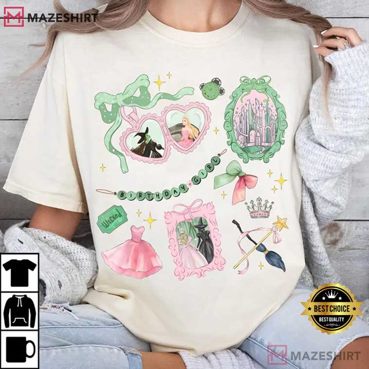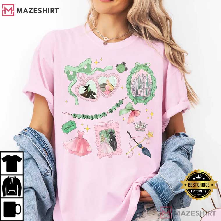 When Glinda said, “You’ve been Galinda-fied,” she probably wasn’t talking about your wardrobe—but this Wizard Of Oz Coquette Wicked For Good Or Birthday Comfort Colors T-Shirt might just change that. This shirt is excellent for dreamers, theater kids, Broadway fans, and everyone else who loves Emerald City. It combines the charm of the Wicked Musical with a soft, trendy coquette look that will help you show off your good witch energy in style.
